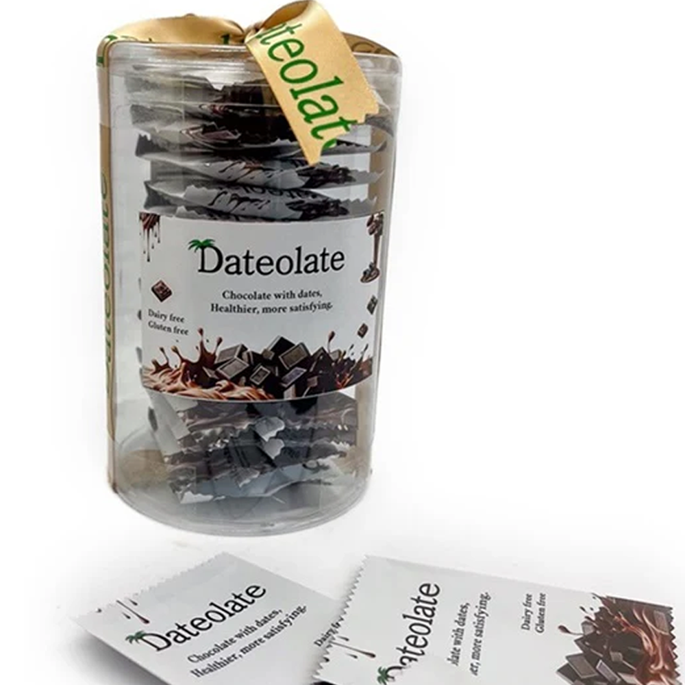 Dateolate individually wrapped dark chocolate dates.